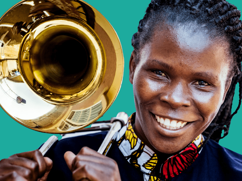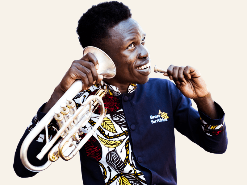 These dynamic young performers are also Music & Life-Skills Teachers at Brass for Africa. They began their journey with Brass for Africa as students benefiting from our programmes, in environments such as informal settlement areas, orphanages and rehabilitation centres. Their talent and dedication led them to be recruited and trained as teachers, and in their daily work they inspire the next generation of disadvantaged children and youth in Uganda. They are a living testimony of the power of music to change lives.
